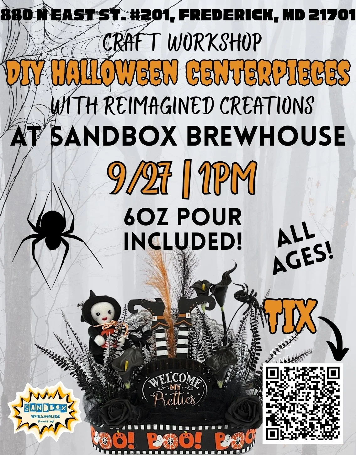 Join us at Sandbox Brewhouse for the perfect festive craft workshop with Reimagined Creations! Spend your Saturday creating your very own Halloween centerpiece to decorate your home!