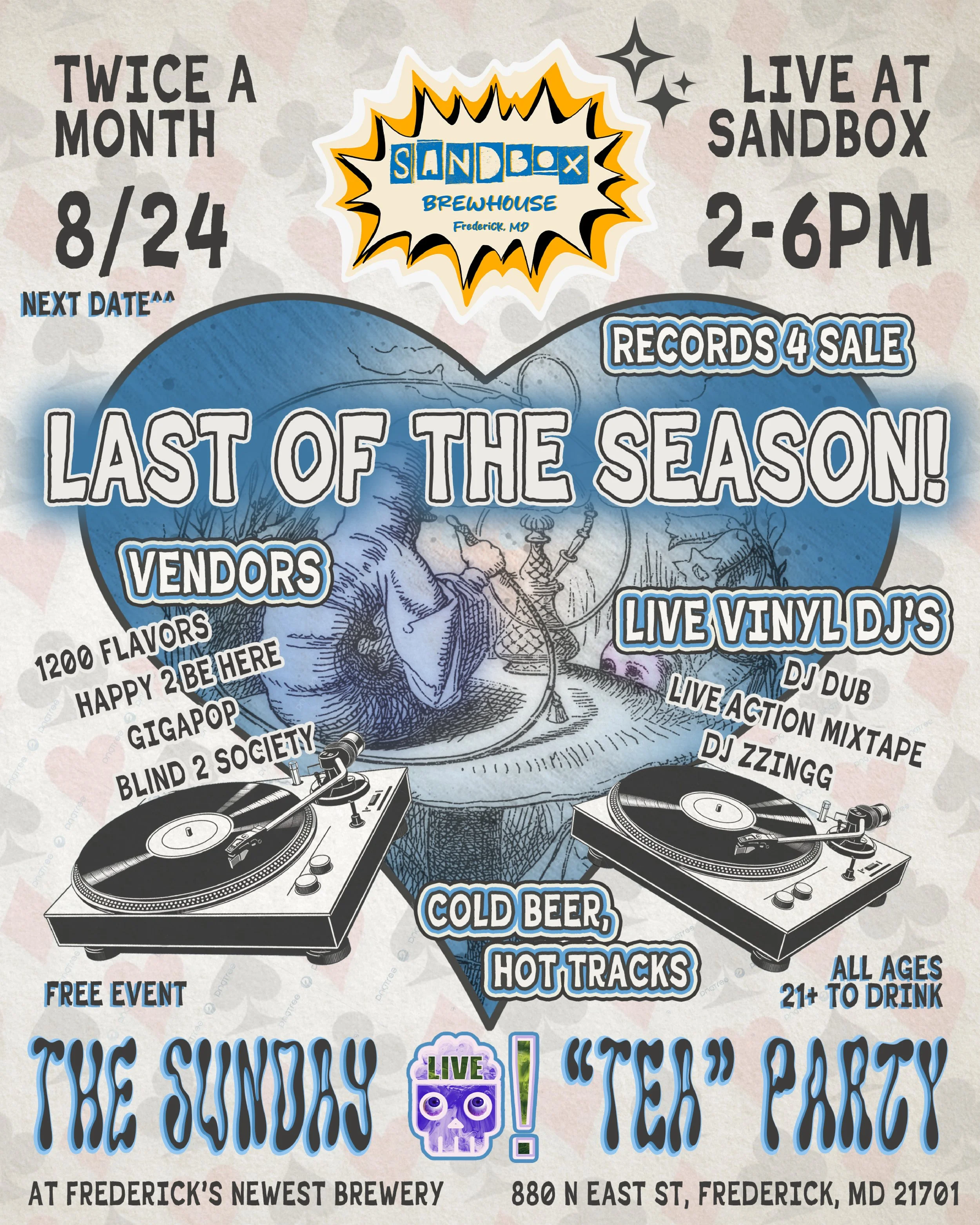 As the summer comes to a close, so must your favorite vinyl day party. But do not fret - the Sunday “Tea” Party will be back in April (but possibly sooner …)!